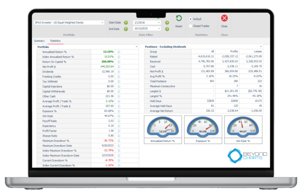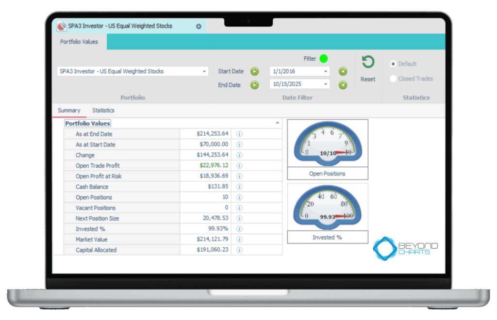 SPA3 Investor uses objective market timing rules programmed directly into the Beyond Charts platform